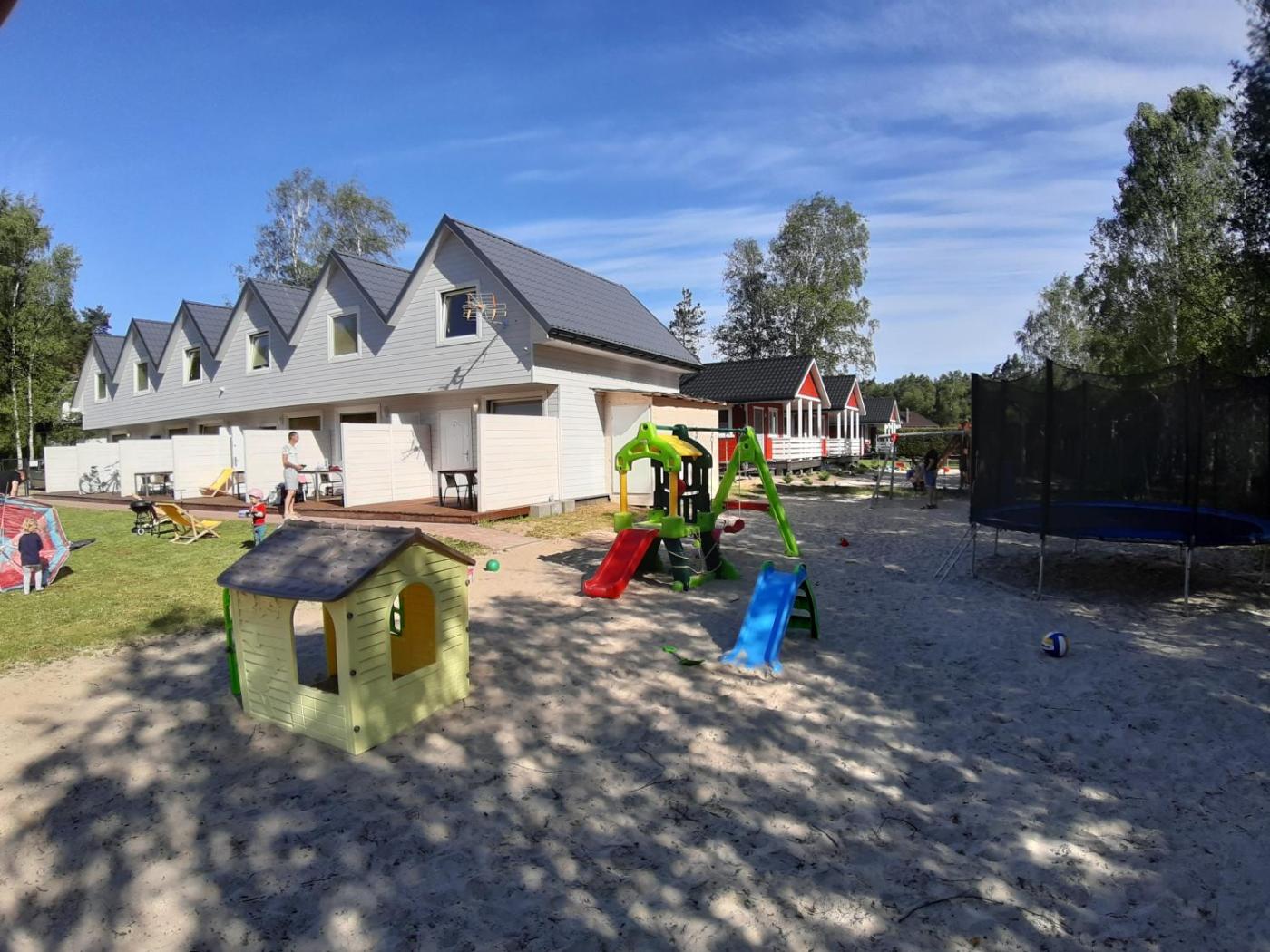 Domek z 2 sypialniami. Boasting a private entrance, this chalet comes with 1 living room, 2 separate bedrooms and 1 bathroom with a walk-in shower. Guests will find a stovetop, a refrigerator, kitchenware and an electric kettle in the fully equipped kitchen. The chalet also includes a barbecue. Featuring a terrace with garden views, this chalet also features a seating area and a flat-screen TV. The unit has 5 beds. Domek - 8 osobowy. Powierzchnia pokoju ok.: 52 mkw. ;