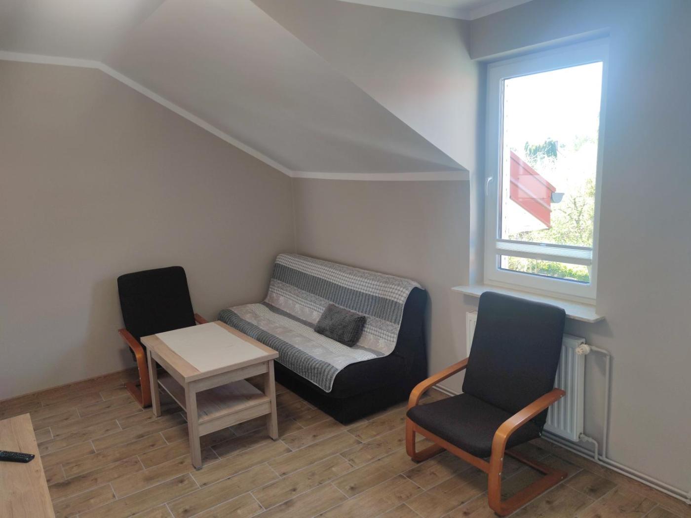 Pokój rodzinny z widokiem na ogród. The family room offers heating, as well as a private bathroom boasting a shower. The family room features a flat-screen TV, a dining area, a wardrobe, an electric kettle as well as garden views. The unit has 5 beds. Rodzinny - 5 osobowy. Powierzchnia pokoju ok.: 35 mkw.
