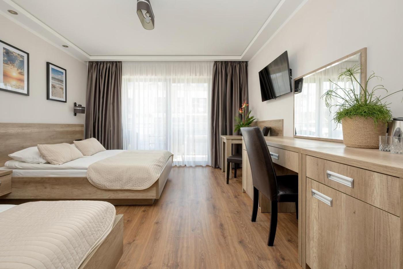 Pokój Trzyosobowy typu Classic. This triple room is comprised of a flat-screen TV with satellite channels, a private bathroom as well as a balcony with a quiet street view. The unit has 2 beds. Pokój Trzyosobowy - 3 osobowy. Powierzchnia pokoju ok.: 23 mkw. ;