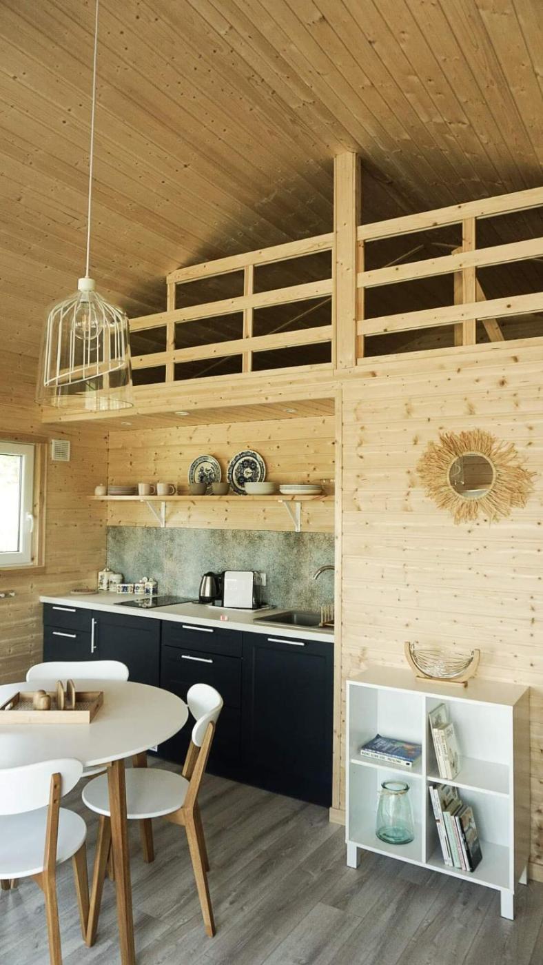 Wszystkie opcje zakwaterowania mają taras, skąd roztacza się widok na jezioro. W każdej opcji znajduje się też kuchnia z lodówką i płytą kuchenną oraz prywatna łazienka z prysznicem. We wszystkich opcjach zakwaterowania znajduje się część wypoczynkowa i jadalnia.
