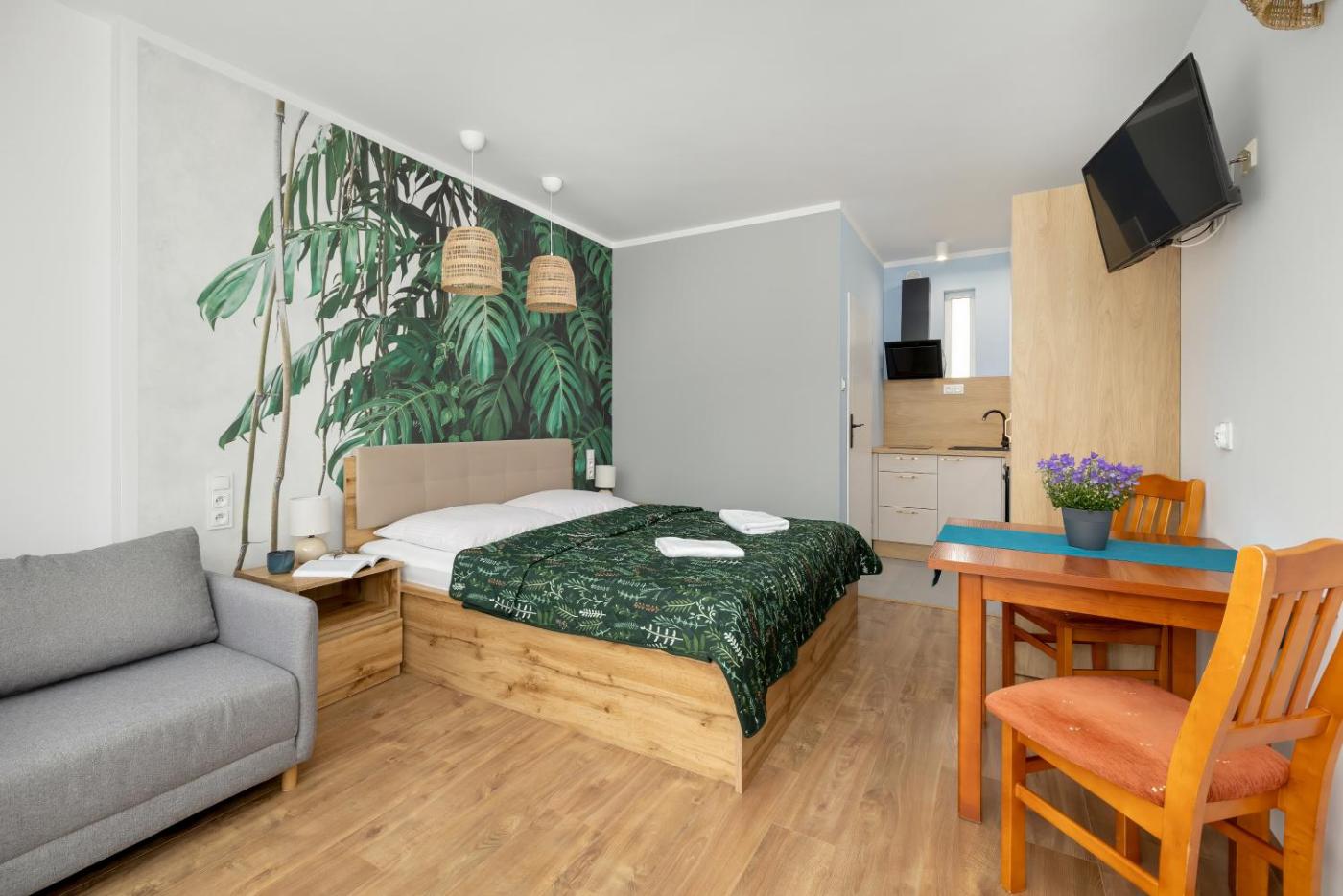 ➡️rodzinnym apartamencie typu studio👨👩👧👦 z balkonem☀️ widokiem na ogród🌻 łazienką w pokoju🛀 telewizorem z płaskim ekranem📺 bezpłatnym Wi-Fi📶 bezpłatnym parkingiem🚗