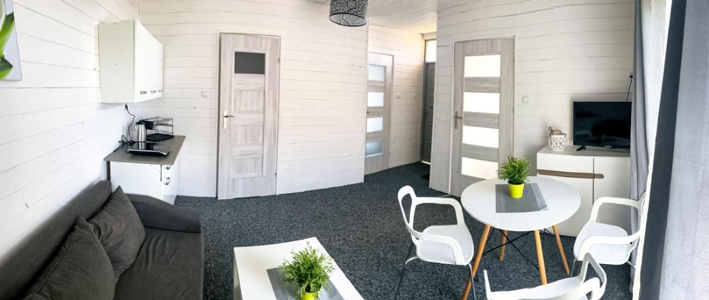 Domek holenderski. Guests will have a special experience as this mobile home features a private pool. Featuring a private entrance, this mobile home is comprised of 1 living room, 2 separate bedrooms and 1 bathroom with a shower. Guests will find a stovetop, a refrigerator, kitchenware and an electric kettle in the well-equipped kitchenette. The mobile home also has a barbecue. Boasting a terrace with garden views, this mobile home also offers soundproof walls and a flat-screen TV. The unit offers 2 beds and 1 futon. Domek holenderski - 6 osobowy. Powierzchnia pokoju ok.: 35 mkw. ;