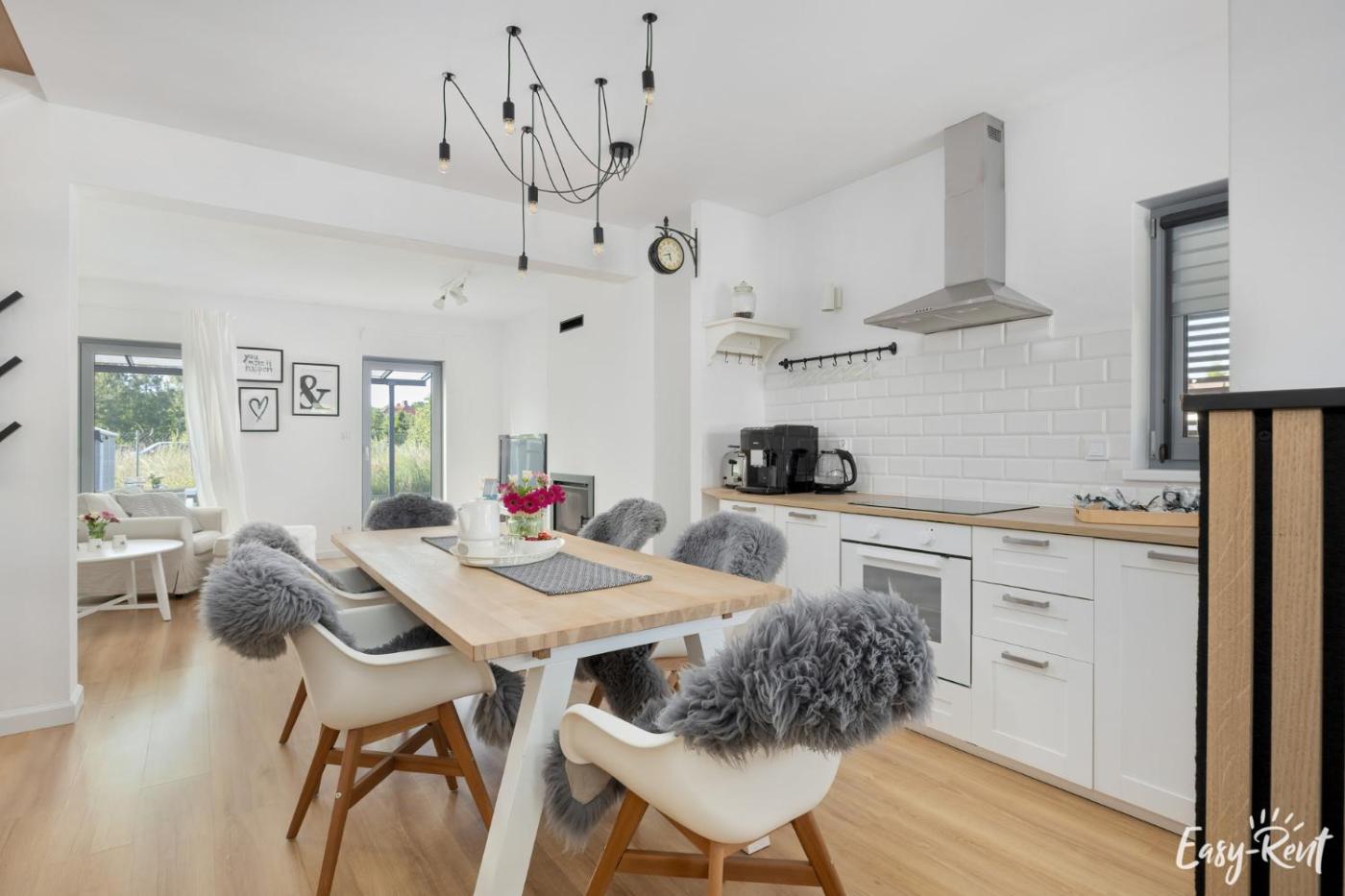 Dom z 3 sypialniami. Featuring a private entrance, this holiday home comprises 1 living room, 3 separate bedrooms and 2 bathrooms with a shower and a hairdryer. Meals can be prepared in the well-fitted kitchen, which comes with a stovetop, a refrigerator, a dishwasher and a tea and coffee maker. Boasting a terrace with garden views, this holiday home also provides a washing machine and a flat-screen TV. The unit offers 3 beds. Dom wakacyjny - 6 osobowy. Powierzchnia pokoju ok.: 89 mkw.