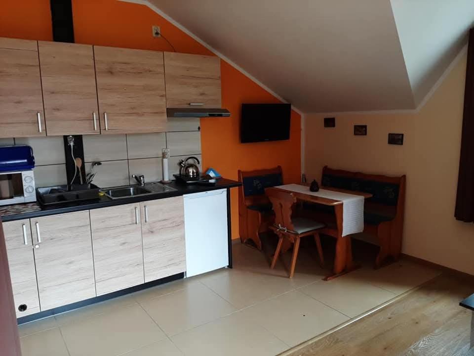 Apartament z 1 sypialnią. Boasting a private entrance, this apartment includes 1 living room, 1 separate bedroom and 1 bathroom with a shower and a hairdryer. Guests will find a stovetop, a refrigerator, kitchenware and a microwave in the kitchenette. The apartment also features a barbecue. Featuring a terrace with garden views, this apartment also offers a seating area and a flat-screen TV with satellite channels. The unit has 3 beds. Apartament - 4 osobowy. Powierzchnia pokoju ok.: 30 mkw.