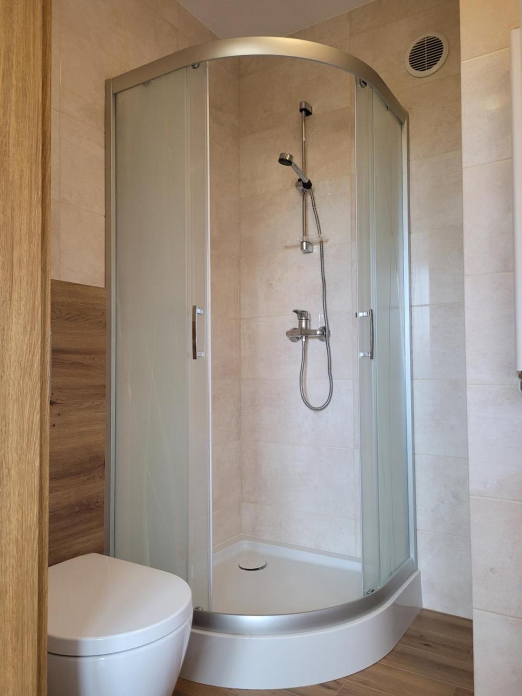 Pokój czteroosobowy z prywatną łazienką. The quadruple room features a tea and coffee maker, a wardrobe, as well as a private bathroom boasting a shower and a hairdryer. Featuring a balcony, this quadruple room also offers a barbecue, parquet floors and a flat-screen TV. The unit has 3 beds. Pokój Czteroosobowy - 4 osobowy. Powierzchnia pokoju ok.: 25 mkw. ;