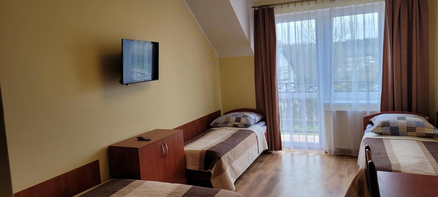 Pokój Czteroosobowy. The quadruple room offers a tea and coffee maker, a wardrobe, as well as a private bathroom featuring a shower and a hairdryer. The unit offers 3 beds. Pokój Czteroosobowy - 4 osobowy. Powierzchnia pokoju ok.: 21 mkw. ;